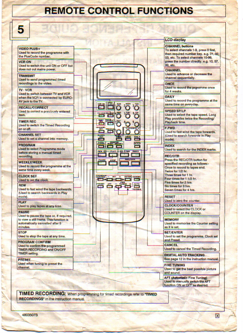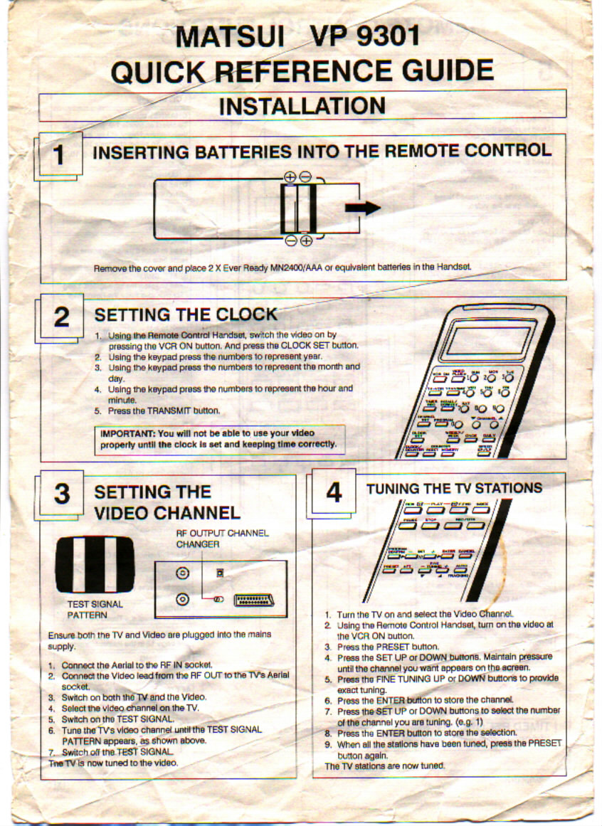 MATSUI VP 9301 INSTRUCTION MANUAL FOR RWEMOTE CONTROL..